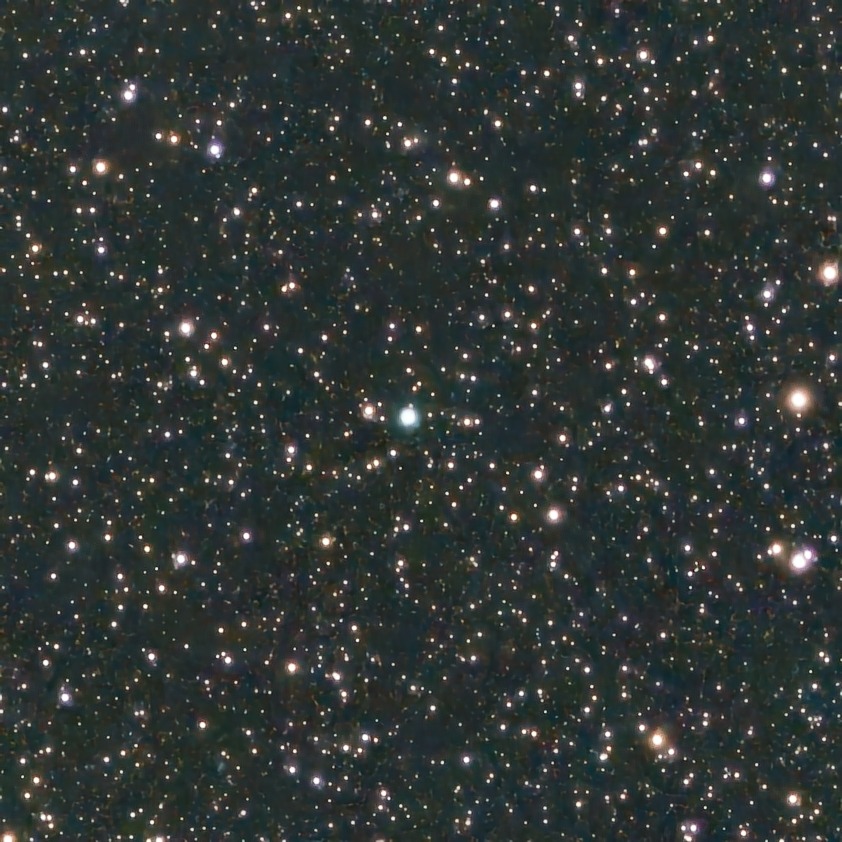 Finally, we have two more planetary nebula. Unlike the Dumbbell, these are more typical in that they appear very small. They are the bright objects in the center of the frame with a faint colored glow around them,.