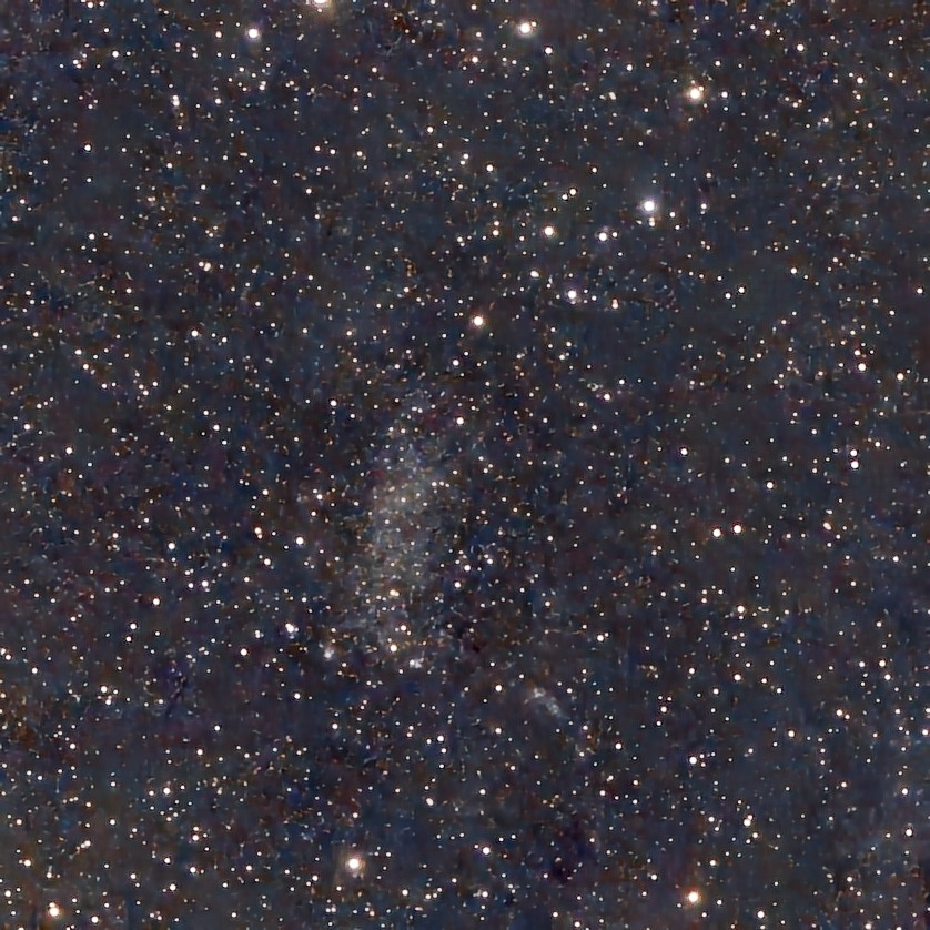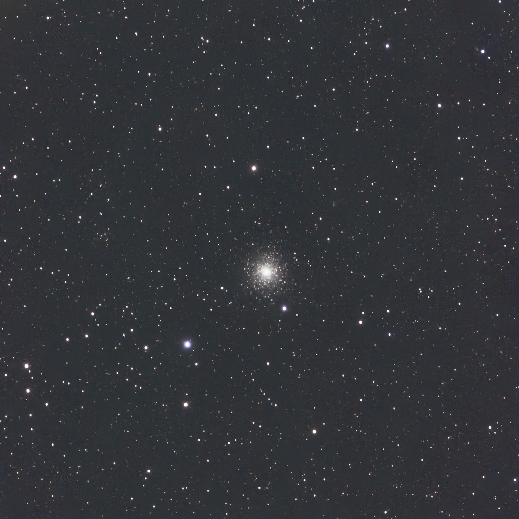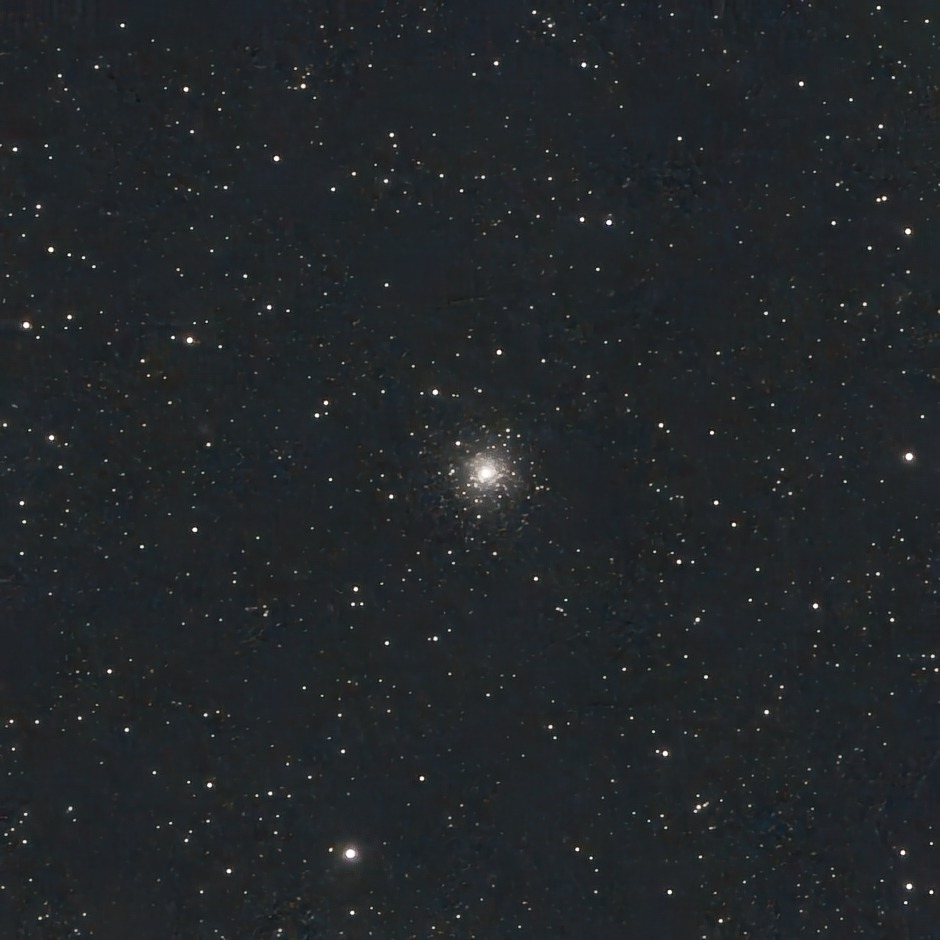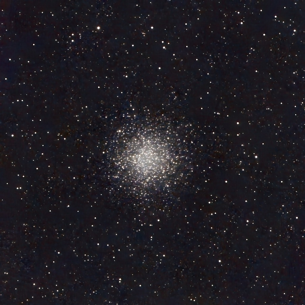 We now move on to a series of star clusters. The very pretty Messier 55 (also known as NGC 6809 or the Specter Cluster) is a globular cluster in the south of the constellation Sagittarius. It was discovered by Nicolas Louis de Lacaille in 1752 while observing from what today is South Africa. Starting in 1754, Charles Messier made several attempts to find this object from Paris but its low declination meant from there it rises daily very little above the horizon, hampering observation. He observed and catalogued it in 1778. The cluster can be seen with 50 mm binoculars; resolving individual stars needs a medium-sized telescope.