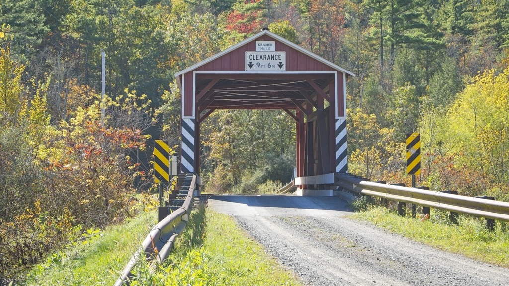 The Kramer Covered Bridge is a wooden covered bridge that is located in Greenwood Township. It crosses Mud Run. It was listed on the National Register of Historic Places in 1979. Built in 1881, this historic structure is a 50-foot-long (15 m), Queen Post Truss bridge with a metal roof constructed in 1881. It is one of twenty-eight historic covered bridges that are located in Columbia and Montour Counties.